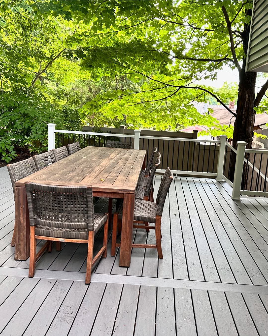 Detailed Shot of Water-Resistant WPC Decking Surface After Rain